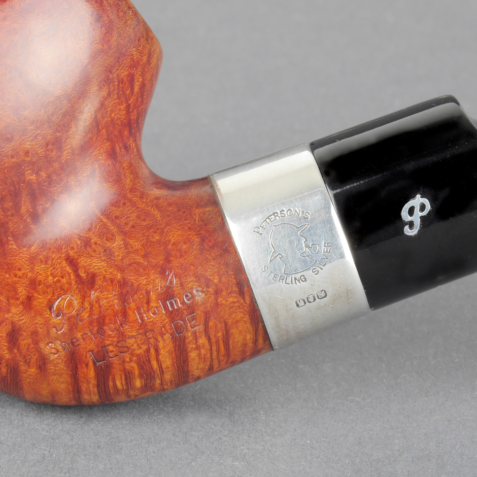 The SHERLOCK Holmes Lestrade is a typical Peterson: strongly curved, powerful and yet handy...and of course with a ring made of 925 sterling silver. Made in Ireland.