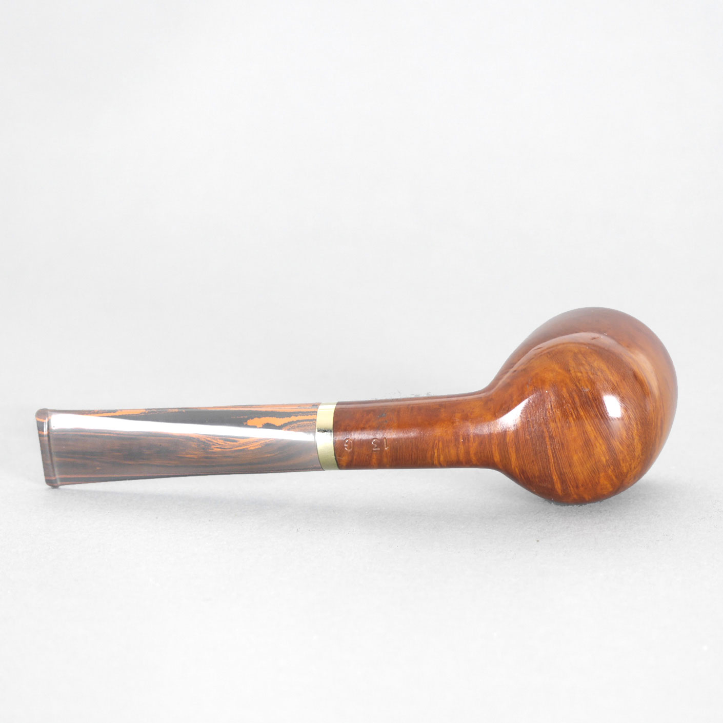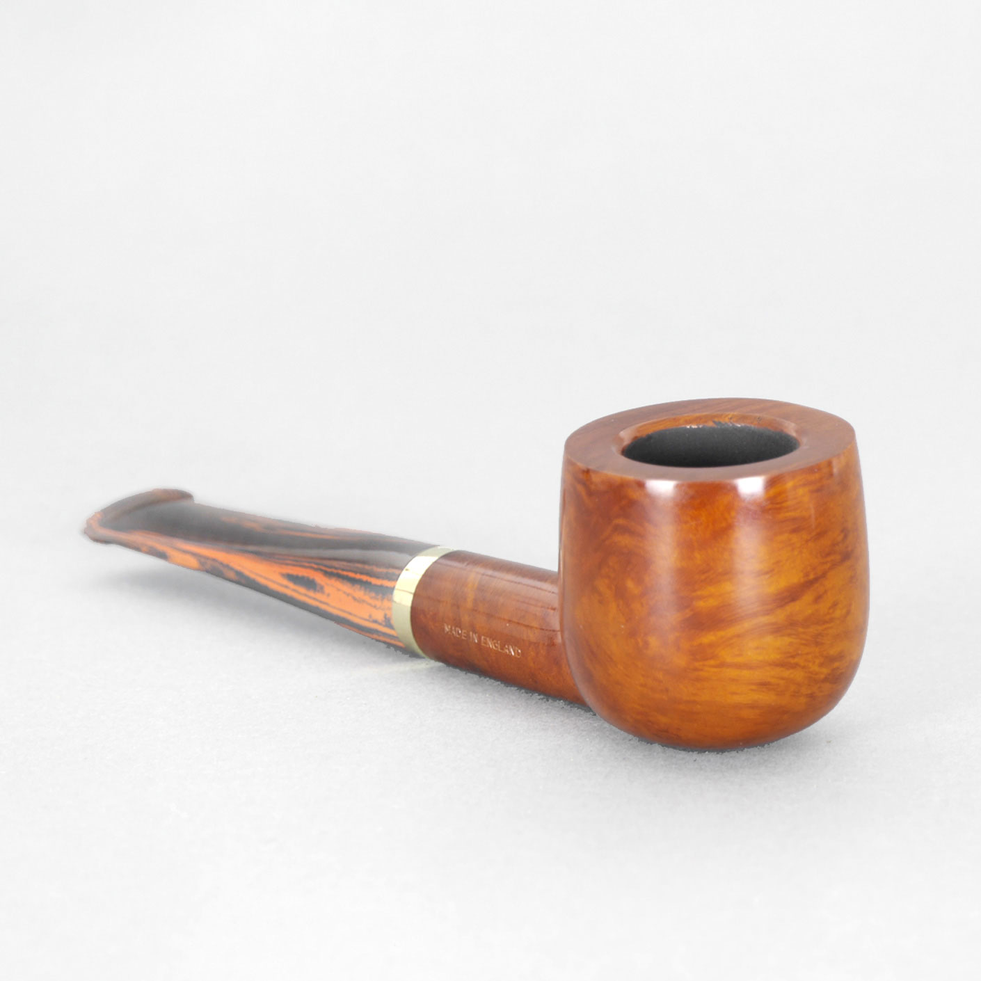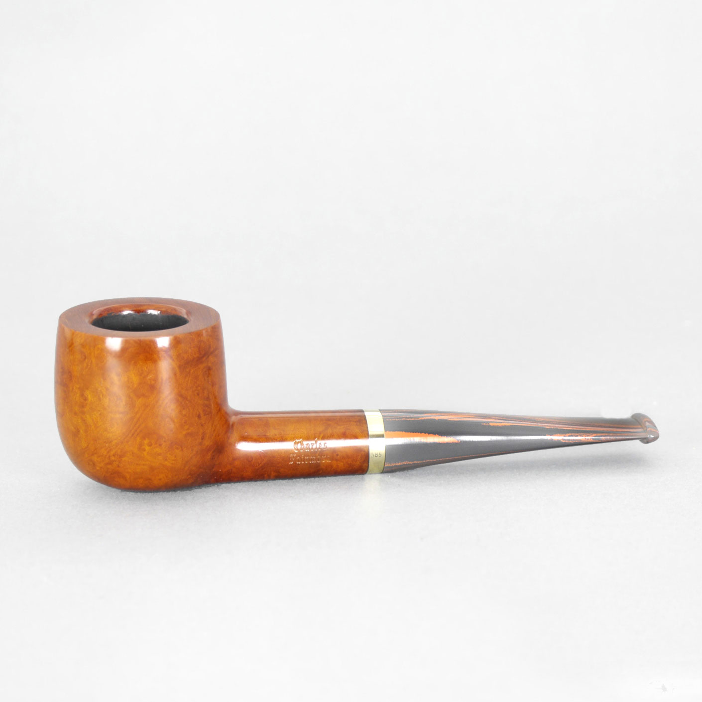 The Charles Fairmorn 13NG, Handmade in England, with its ring of 585 gold and the handmade ebonite mouthpiece in light grey/orange, is a particularly noble and rare pipe. The head is stained light red and highly polished.