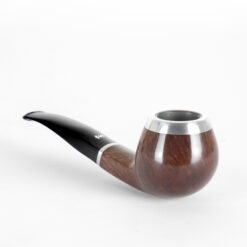 The Stanwell 182 has been a favourite among fans of Scandinavian pipe design for many years. This apple-shaped pipe has shiny metal applications on the stem and bowl. A very well-preserved example with a lively grain. Made in Denmark.