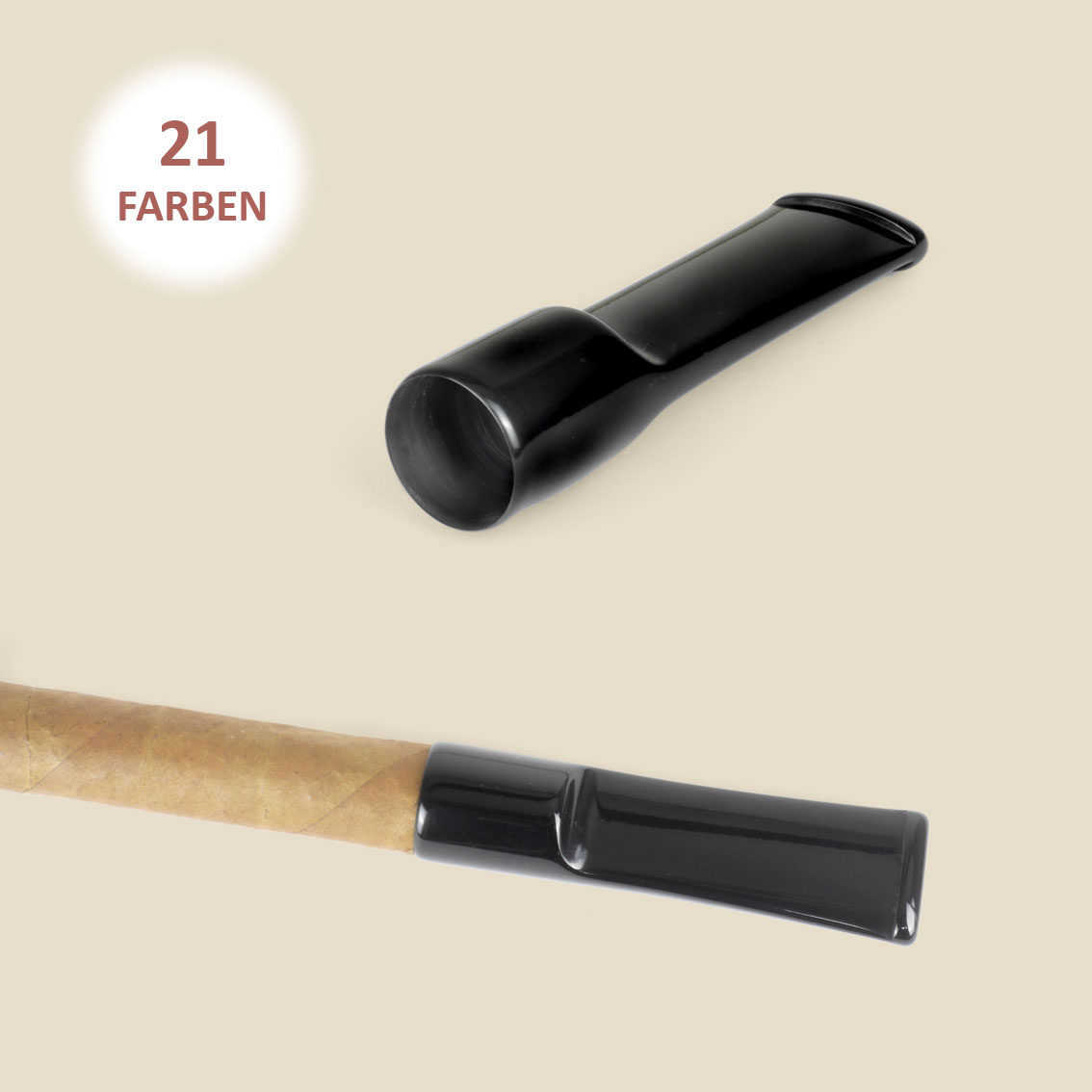 Acrylic cigar holder, total lenght 75,0 mm, diameter 18,0 mm. For cigar diameters 15, 16 and 17 mm.